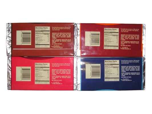 Whipple-Scrumptious, Nutty Crunch, Triple Dazzle and Chilly Chocolate Wonka Bar props from Charlie and the Chocolate Factory