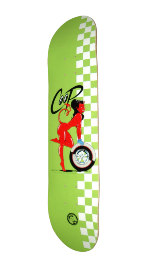 Devil Girl Hot Rod Wheel design - Stink Brand Skateboard by the artist Coop (Chris Cooper)
